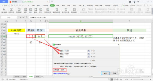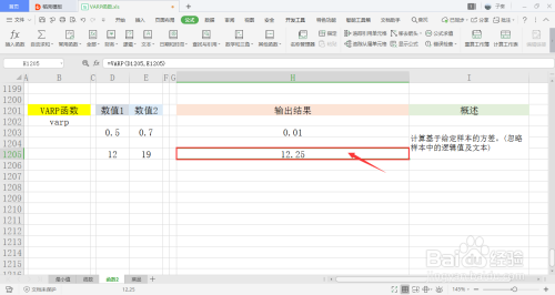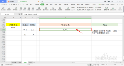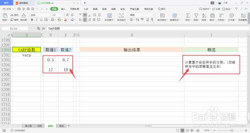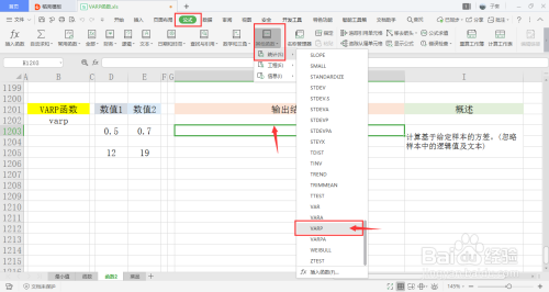 选中一个单位格用于存放输出成果,在菜单栏的公式下,打开其他函数中的统计下拉框,点击此中的VARP函数。