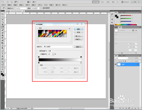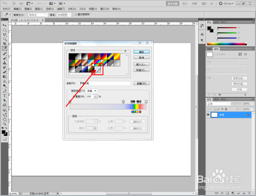 点击【渐变东西】-【线性渐变】,点按【可编纂渐变条】,弹出渐变编纂器;