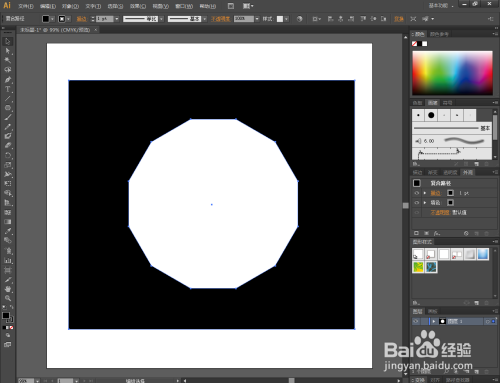 点击【选择东西】,同时选中矩形图案和十二边形图案。点击鼠标右键-【成立复合路径】,将两图案路径进行连系;
