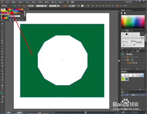 最后,点击【色板】,将图案设置为想要的颜色即可。这样我们的镂空十二边形矩形图案就建造完当作了。