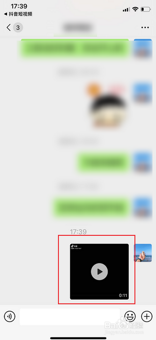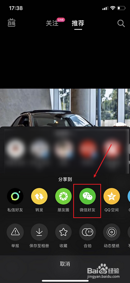 从手机相册里找到分享的视频,点击发送给老友即可!