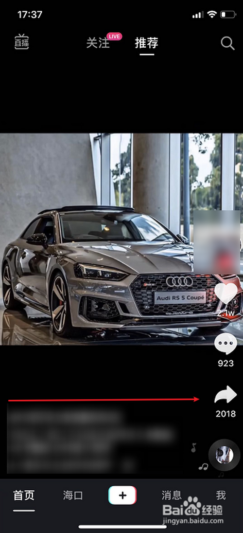 打开抖音,刷到喜好的视频后,点击【转发按钮】
