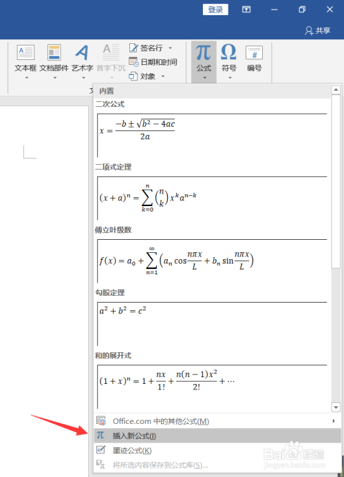 在弹出的下拉对话中点击“插入新公式”
