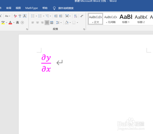 在Word页面即可以看到插入的偏微分公式,点窜y、x即可获得本身想要的偏微分公式