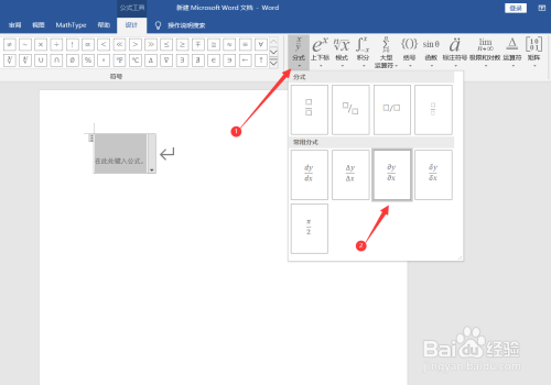 5. 接着点击“分式”,点击选择偏微分公式