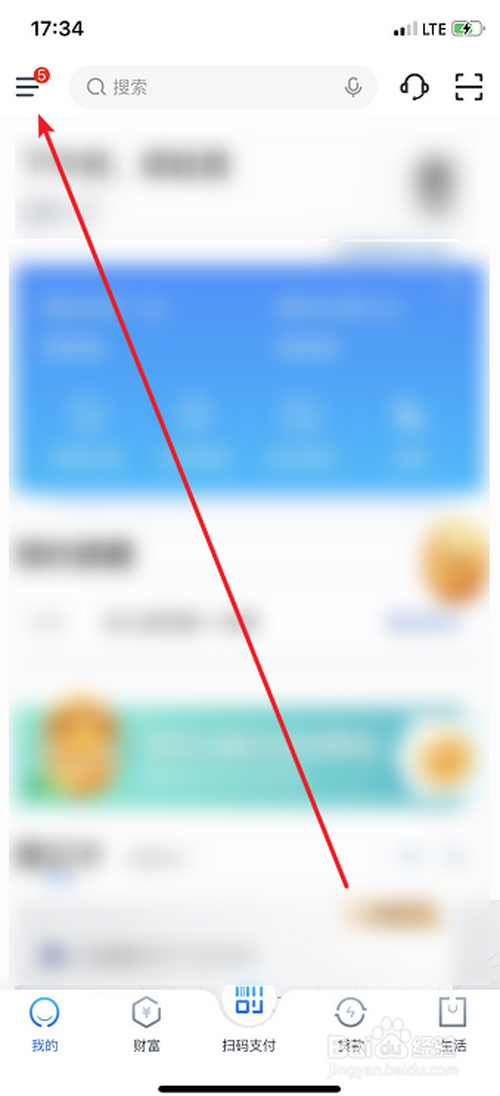 打开交通银行APP后,点击左上角的【菜单图标】