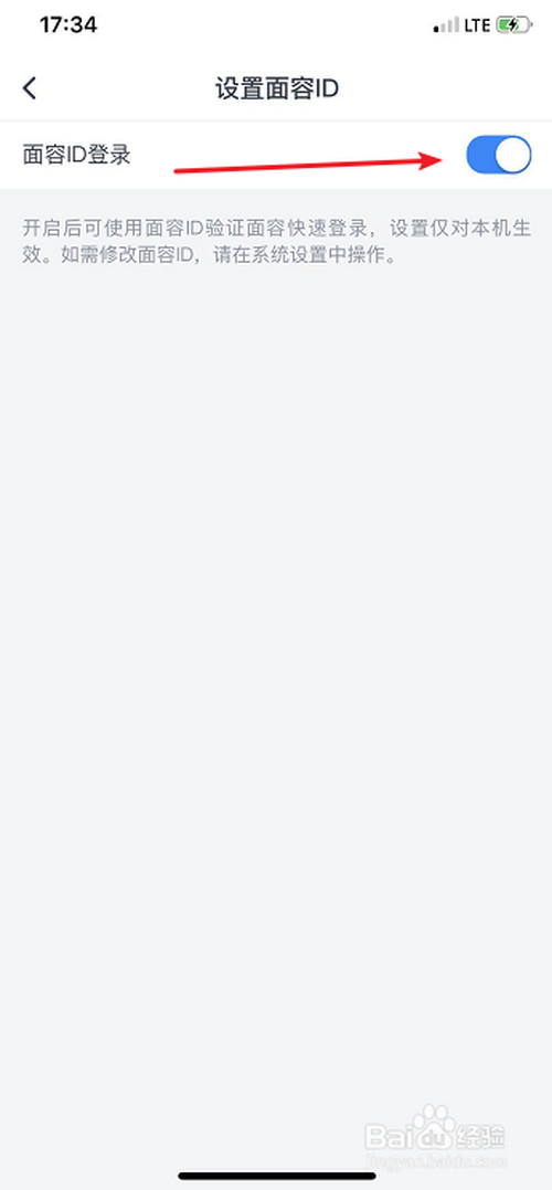 点击开关按钮,封闭【面庞ID登录】