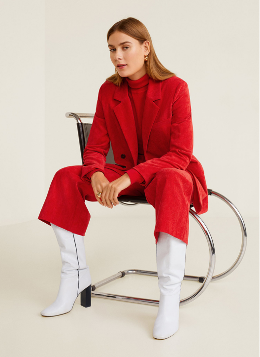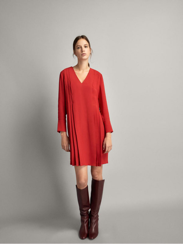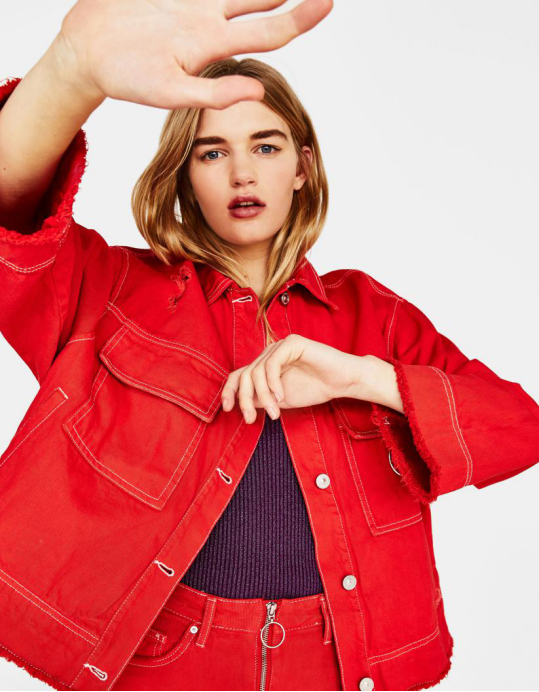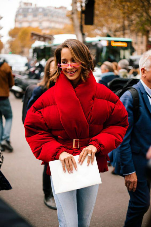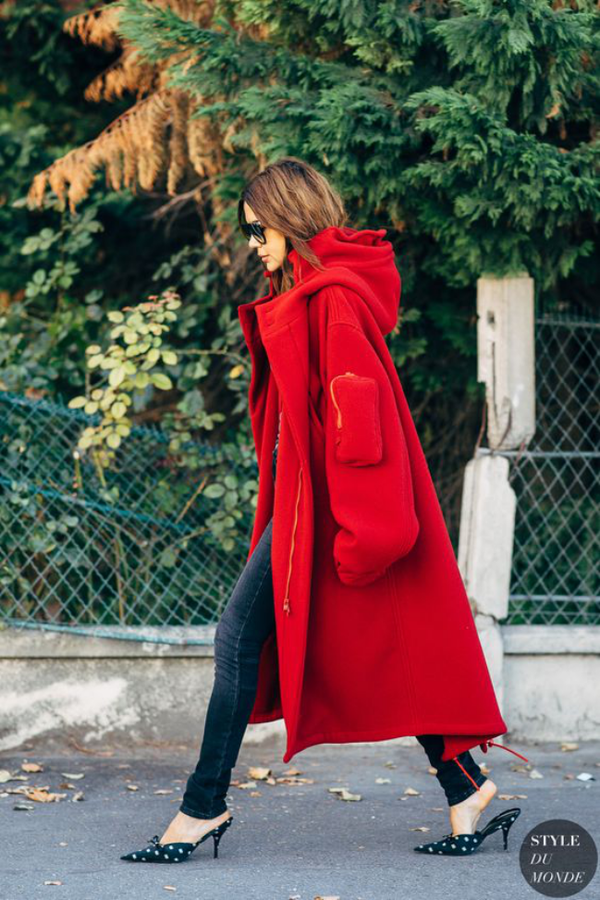 不想很夸张的穿一整件红色的小仙女们可以试一下买一些局部有红色的单品,年夜衣上局部的红色细节,好比红色的翻领,红色的口袋,这种局部红色的细节会让欠好把控红色搭配的小仙女们很好的掌控整体的搭配基调,因为局部的小红色不会影响到整体所以搭配方式跟日常平凡的搭配无异。