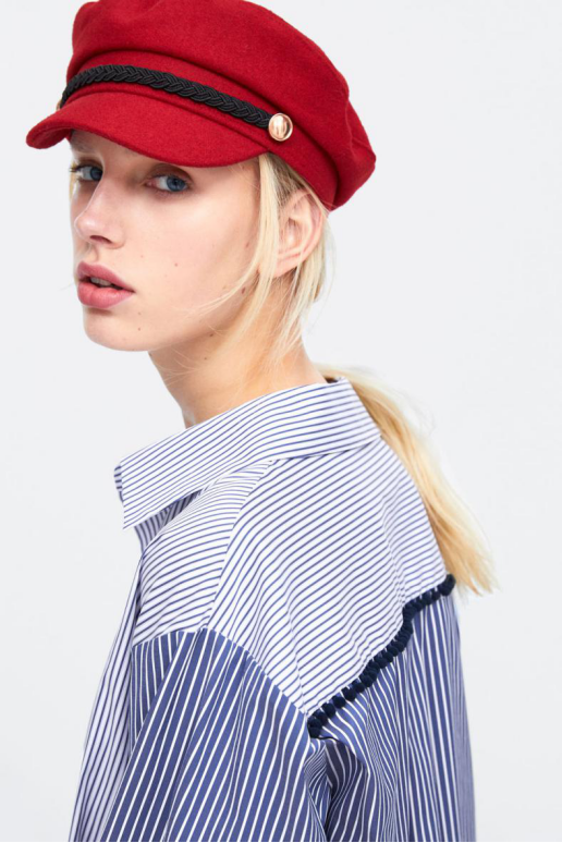 本年风行的贝雷帽不妨来一顶红色的,再搭上红色的高跟鞋在整体搭配上起到上下呼应均衡的感化。