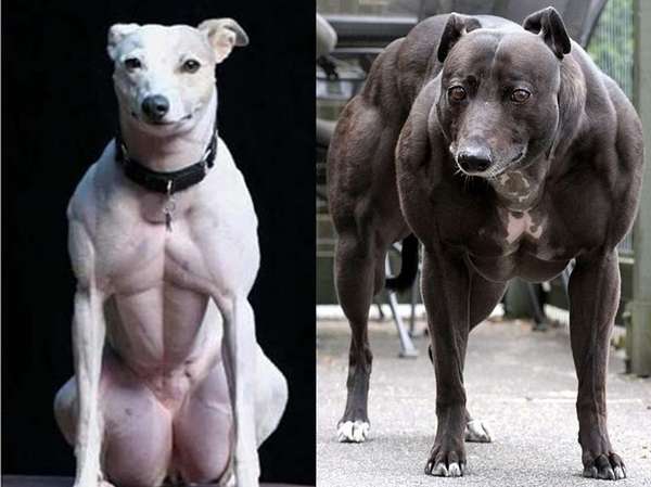 它们 GDF-8 双配子突变的纯合体长这样,双肌狗。