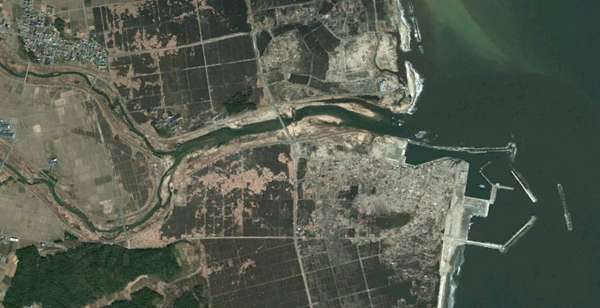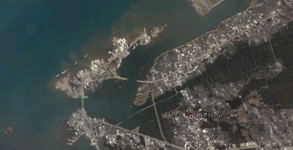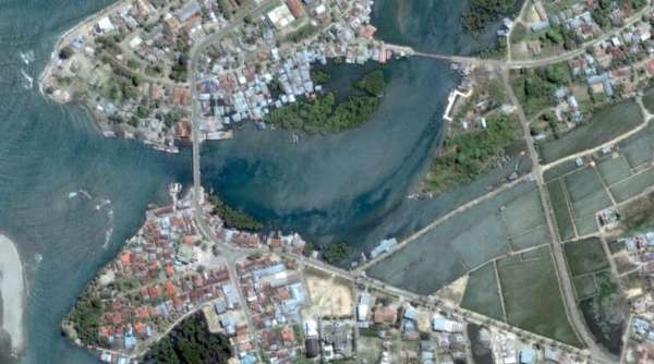 2010 年 4 月 4 日的卫星照片,可见后期新建的大桥