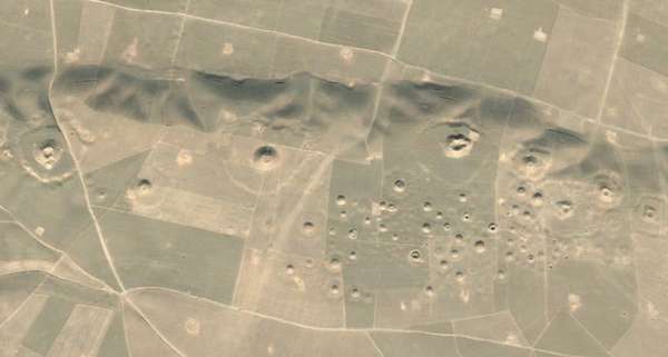 阿富汗境内某地的青铜时代王陵封土群,可以看到良多顶端已经塌陷。