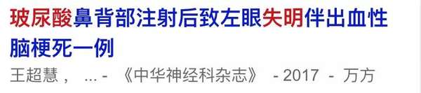 良多文献都曾报道过因玻尿酸打针不妥,造当作掉明,甚至中风的案例。