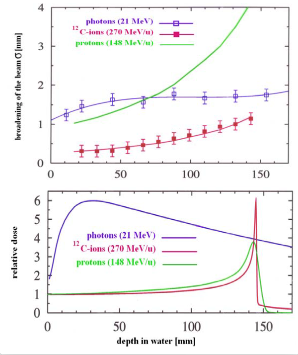 上图中,洋红色的数据线,是碳离子在水中的辐射性质。可以看到,碳离子治疗不止有着比质子治疗更优良的“布拉格峰”特征,与此同时,其在水中的横标的目的发散更是比质子治疗还要小良多。也正因如斯,碳离子治疗可以认为是治疗深层肿瘤更好的方案。今朝从事碳离子治疗方面研究的国内科研单元有良多,且我国是少数几个起头了这方面研究的国度[3]。