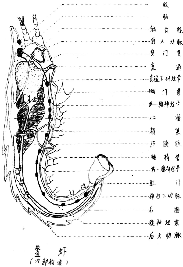 上面的鳌虾纵剖面图所示,鳌虾与虫豸同属于节肢动物门,它们的神经系统类型是一致的,即链状神经系统。上图中,黑线即为腹神经索,每一个膨大为一个神经节(由大量神经细胞组成),在它顶端(即头部)有一个“庞大”的膨大称为“脑”神经节。每一个神经节标的目的身体各部门发出神经纤维和神经细胞组成环状遍布全身从而节制整个身体。