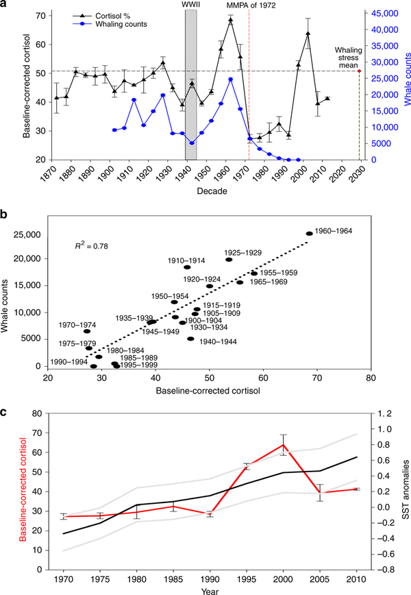 Trumble, S. J., Norman, S. A., Crain, D. D., Mansouri, F., Winfield, Z. C., Sabin, R., … Usenko, S. (2018).Baleen whale cortisol levels reveal a physiological response to 20th century whaling. Nature Communications, 9(1).doi:10.1038/s41467-018-07044-w