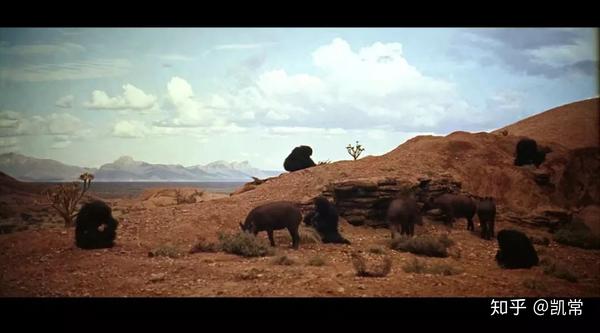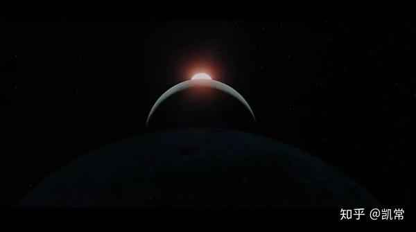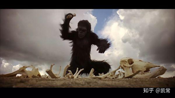 太阳陪伴着《查拉图斯特拉如是说》的配乐逐渐升起。后面几个镜头,从外太空到地面,再到生物体的勾当规模,最后到黑猩猩们的糊口场景。