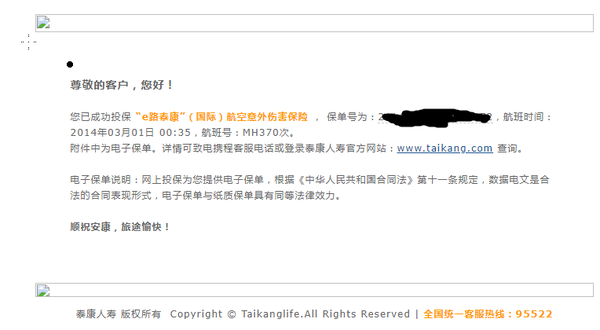 EDIT1:看了其它回覆,发现有人质疑部门回覆的真实性,不得不说此刻知乎确实有编故事的,机票不在手边,翻了下邮箱发现了买机票时保险简直认邮件,截个图发上来。