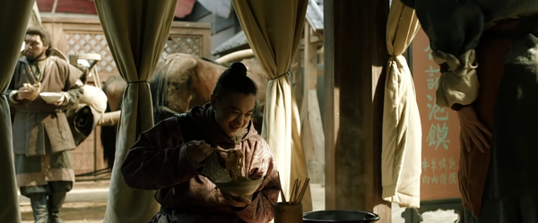长安美食榜点击率的前三,馎饦,即面片汤。《齐平易近要术》说这一道面片必得要搓得极薄,大火烫熟,“非直光白可爱,亦自滑美殊常。”别看它是一碗面,其实它也是一碗饼。就是和胡饼同宗同源的汤饼一脉。面片看似简单,实则最考验厨师手里功夫,单和面就能决议扯出的面片是否筋道绵软,且在滚水中翻腾几下就要出锅,对案板程度考验严苛。怪不得闻染要琢磨这么久,才能给张小敬上一碗及格的面片汤。