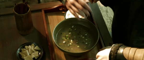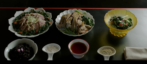 令吉温魂牵梦绕梦寐以求的一顿饭,是剧中少有的搞笑桥段。夕食即是飧,晚餐是也。初看十分简单,不外两荤一素,其实唐时晚宴也不外是一张案台,几品饭菜,实施分餐制。唐代养鸡遍及,鸡肉易得,与绿蔬同煮也平常。另一道菜难辨真身。值得称道的是这碗乌米饭,又称青精饭。《本草拾遗》云:“取南烛茎叶捣碎,渍汁浸粳米,九浸九蒸九晒,米粒紧小,黑如瑿珠。”此饭来自道教,但摄生功能被宿世人承认,为文人所追捧。“岂无青精饭,使我颜色好。"杜诗为此饭养颜认证。