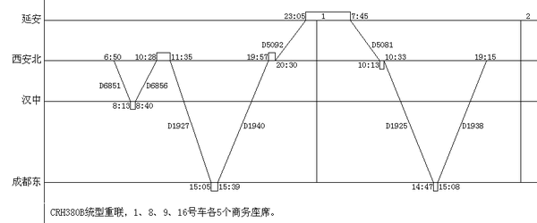 对于一组动车车底而言,从图中可以看到其在两天中只有一天在延安/玉林留宿,而另一个晚上则回到了西安/南宁,且没有在车站内留宿。出于铁路运用维修规程的原因,列车仍需要按期回到动车段(所)进行检修整备。