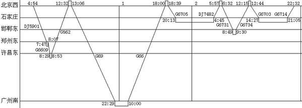 如京沪高铁海说神聊京-上海、京广高铁海说神聊京-珠三角、海说神聊京-昆明偏向开行的卧铺动车组,大部门需要在早上抵达海说神聊京后回到段内进行查抄维修,并期待至发车前一小时摆布走行至车站。