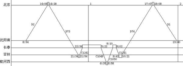 ② 以大都城际铁路和高铁线路为例,线路上运行的车次数量是要远多于线路上奔驰的“车底”数目的,是以,会有一些动车组会在一天中担任多趟列车车次,即“套跑”。以京津城际铁路为例为例,列车单程仅需30分钟,是以会有在一天之中见到统一组动车组车底良多次。在普速铁路中,同样存在套跑的现象。在京津城际2018年的运用中,最多的一组车可以在一天中担任17趟列车。