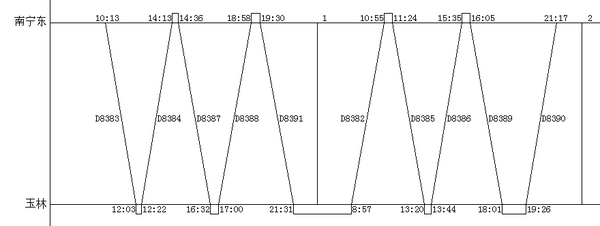 图中的西延线动车和玉林站动车在深夜抵达终点站延安/玉林后,但考虑到终点站四周又不具备存车线,回到西安/南宁停放整备既不具备经济性,又难以包管早间动车的开性需求,是以放置在终点站进行留宿。此中这组南宁东-玉林动车就是典型的固心猿意马区间套跑的动车组列车,而这组西延动车则在一天中走过了西延线和西当作客专,套跑了多组分歧区间的列车。
