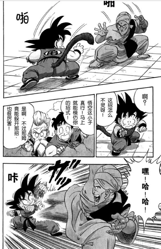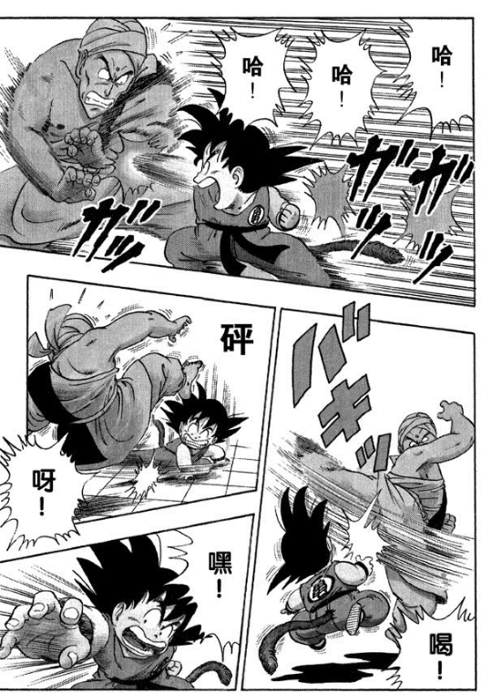 再回来看漫画,比力典型的也有鸟山明,两页交代的两格,还有后面的几格都跳了: