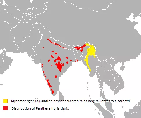 孟加拉虎是今朝数目最多的虎亚种,其数目跨越 3000 只(印度、不丹、尼泊尔、孟加拉四国的数字统计)。因为孟加拉虎的分布区仅仅在西藏东南一带进入中国境内,是以这个数目最多的山君亚种在中国并没有几多潜在的分布空间。