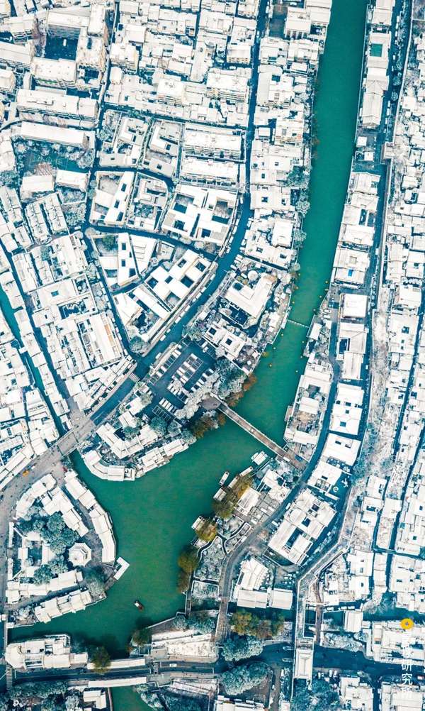 当建筑堆积当作群,南边多水的特征让临水而建的衡宇、道路形当作了美好的曲线。