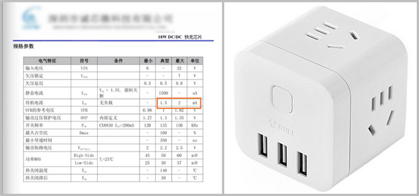 我找到了一份某公司的 18W 充电器的手艺标注,典型待机电流为 1.5-2 个 mA,乘以 3.3V 摆布的工作电压,获得的结论也是 0.004W 摆布,相差不多。