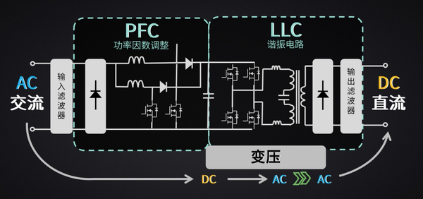 后续 LLC 谐振电路,则起头对电进行真正的加工。四个功率半导体开关经由过程高频而有纪律的开和关,用 PWM 脉宽调制的方式,将直流电切确地调整为方针波形。