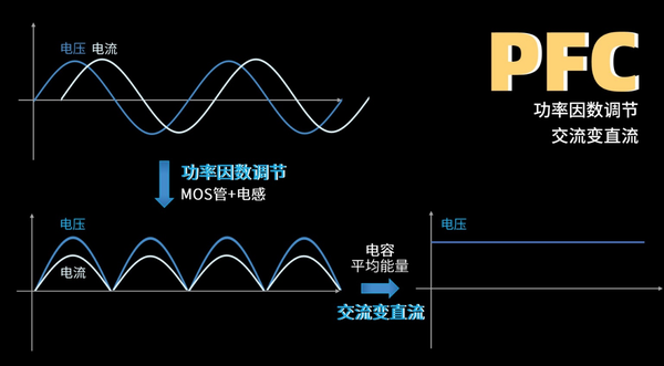 PFC 电路的使命,是将 220V 平易近用电的功率因数进行调节,并将交流电转换当作直流电。但切完的菜还只是半当作品,不克不及直接上桌。