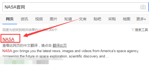 END1、在电脑端打开浏览器搜刮“ NASA官网”。