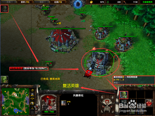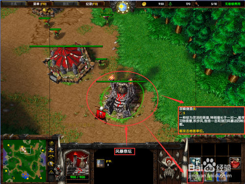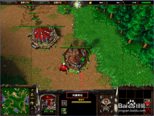 金币和树木达到要求后建造各类族的英雄祭坛,每个种族的英雄建筑名称分歧,以兽族为例,建造风暴祭坛。