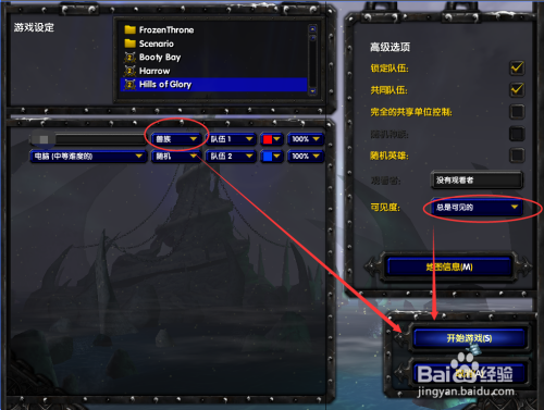 起首我们进入客户端,选择一个对战地图,选好种族后进入游戏。