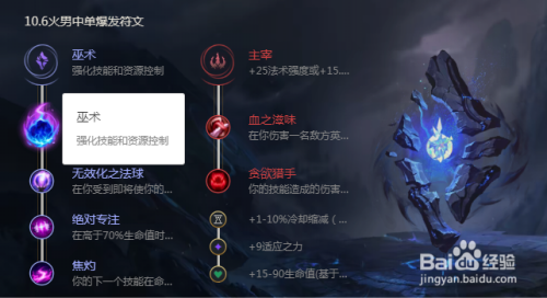 相位猛冲前期防gank,后期团战追杀能力强,法力流系带、风暴聚焦共同被动帮忙发育。血之滋味和贪欲猎手对拼不虚。