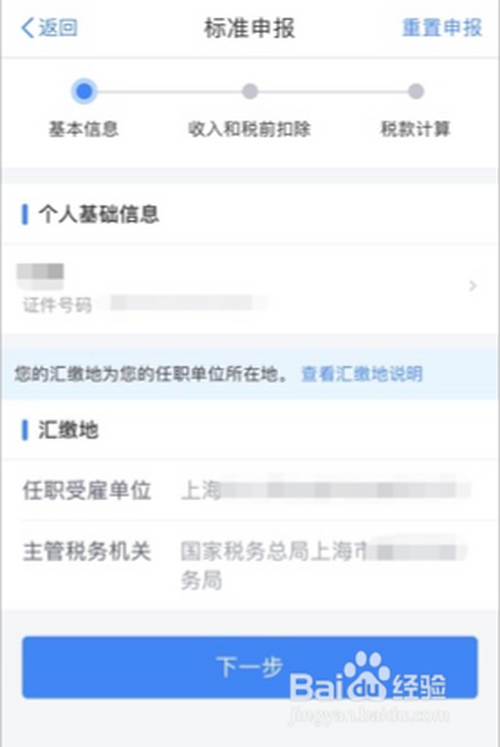 ⑤第五步,进入年度汇算本家儿界面后,在页面选择“汇缴地”后点击下一步。