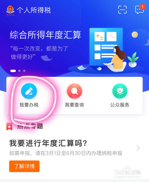 第四步,进入我要办税本家儿界面后,点击页面中“综合所得年度汇算”。