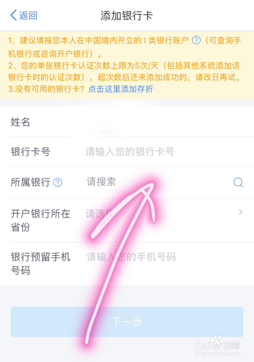 ⑥第六步,如需要退税,进入下个界面后,进行“银行卡”绑定并提交即可。
