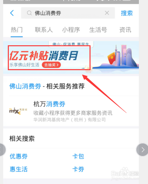 第五:在搜刮框输入【佛山消费券】点击领取。
