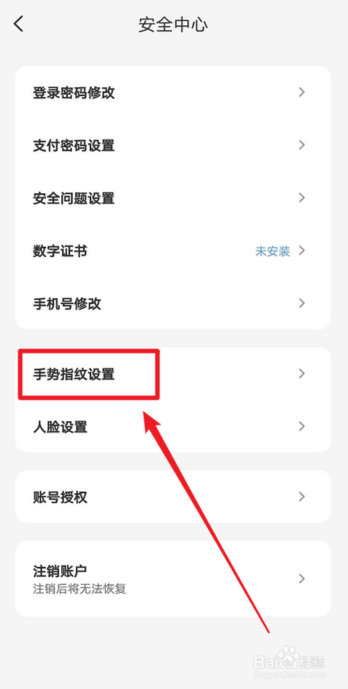 ②选择【平安中间】,点击【手势指纹设置】。