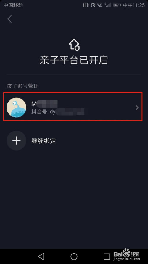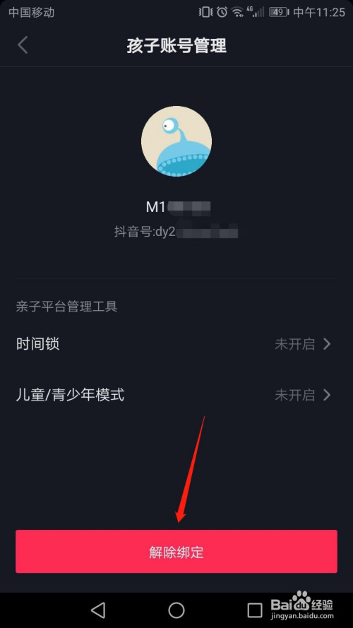 在孩子账号办理页面,点击"解除绑定"按钮。