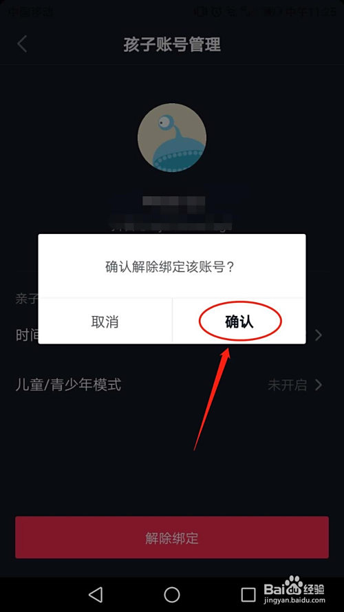 在确认解除绑定该账号对话框中,点击"确认"即可。