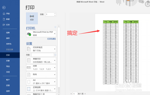 第六步:点击Word左上方的【打印预览和打印】,查看打印环境