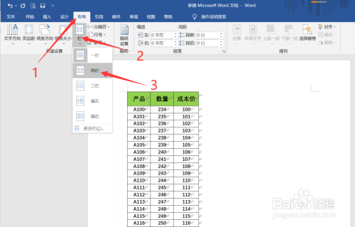 第四步:点击【结构】选项卡下方【栏】的下拉箭头,选择【两栏】