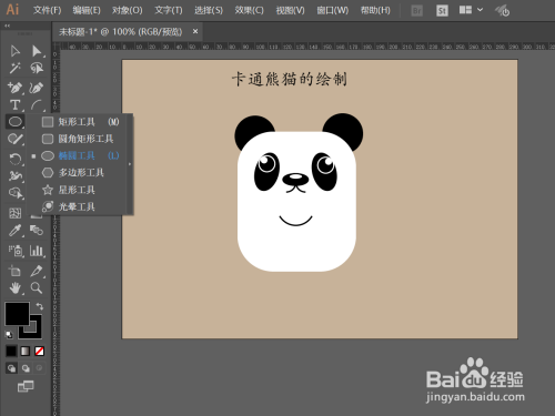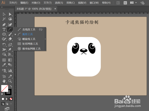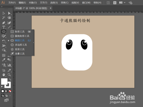 再操纵椭圆东西绘制两个黑色填充和白色填充的椭圆、用弧线东西绘制两头弧线,组合到一路以作鼻子;