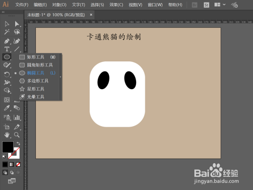 操纵椭圆东西绘制两个椭圆图案以充任熊猫的眼眶;