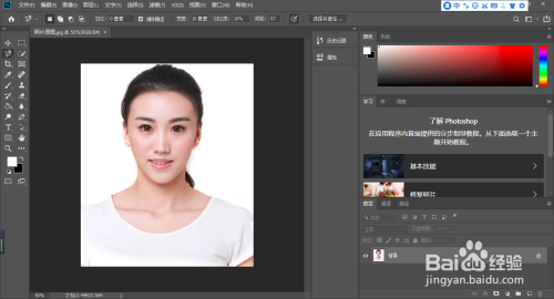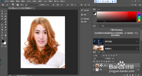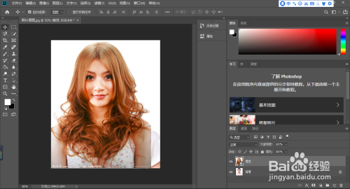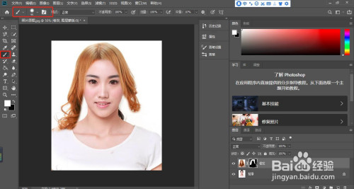 利用画笔东西,在要换发型的照片的响应位置进行涂抹,将模特的发型显示出来,如下图: